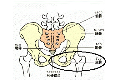 - 座るときに座骨に体重をかける(座ってお尻の下を触ったところにある骨)